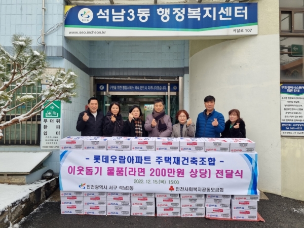롯데우람아파트 주택재건축조합, 석남3동에 라면 120박스 전달