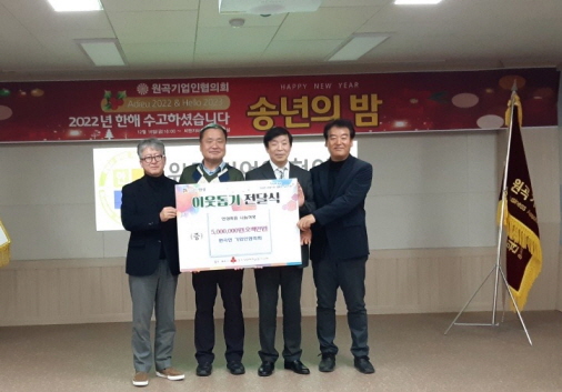 [금요저널] 안성시 원곡면은 지난 16일 원곡면기업인협의회가 송년의 밤 행사에서 관내 저소득층 가구 지원에 사용해달라며 성금 5백만원을 원곡면 지역사회보장협의체에 기탁했다고 알렸다.