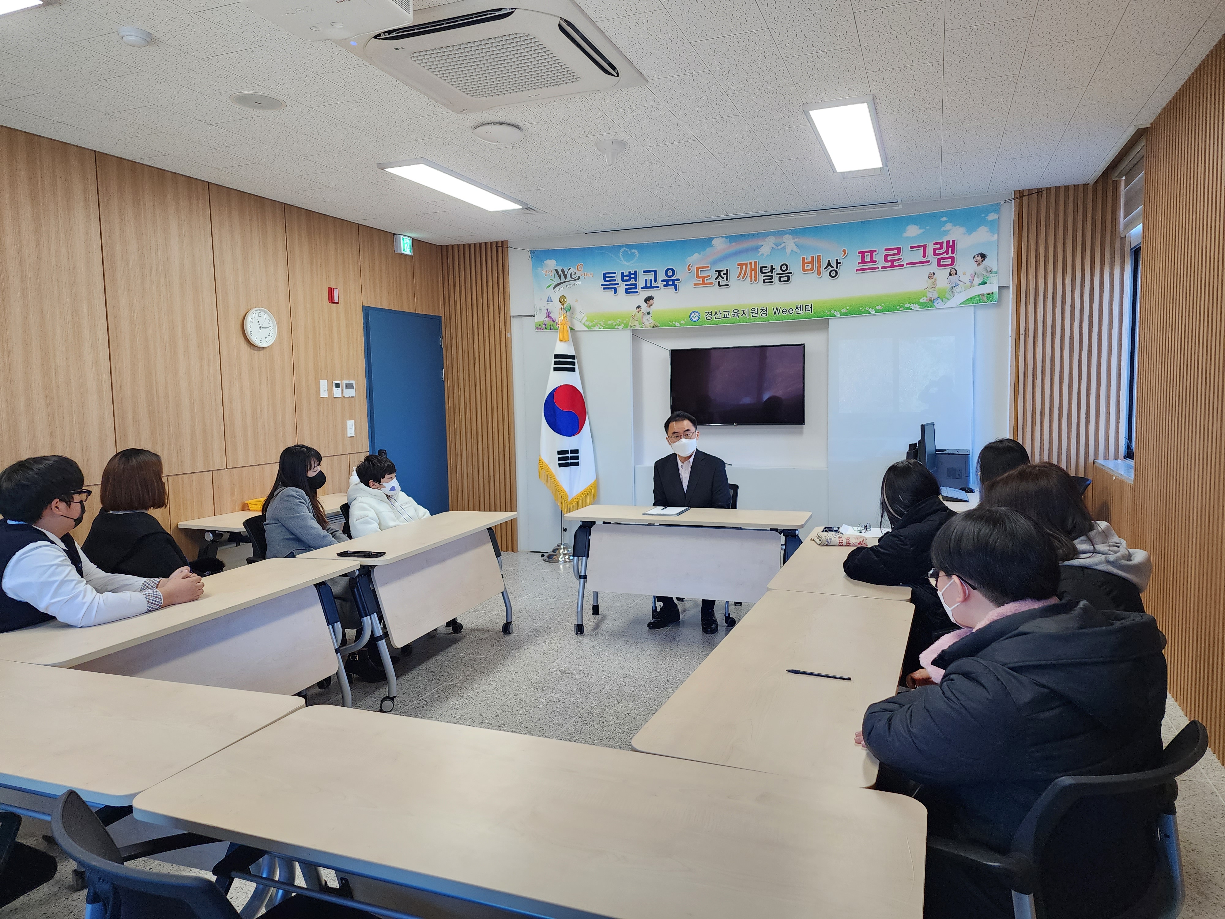 □ 경산교육지원청(교육장 이양균) Wee센터는 2022년 12월 20일(화) 경산교육지원청 학생교육지원관 3층 Wee센터에서 경산관내 특별교육 이수처분을 받은 학생 및 학부모를 대상으로“특별교육 도(전)깨(달음)비(상) 프로그램”을 진행하였다.