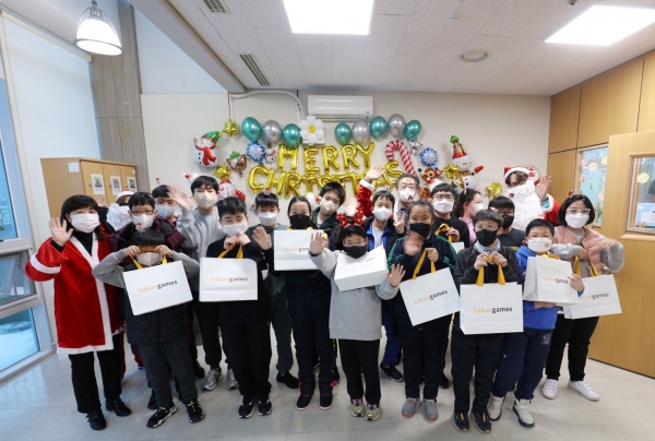 카카오게임즈는 크리스마스 케이크와 춘식이 담요 등 푸짐한 선물들로 구성된 선물꾸러미를 성남이로운재단을 통해 성남시청소년재단에 전달했다.