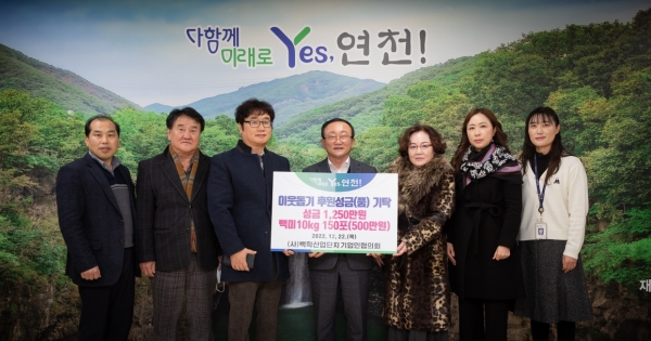 [금요저널] 백학산업단지 기업인협의회는 지난 22일 연천군청을 방문해 연말연시 이웃돕기 성금 1250만원과 백미10kg 150포를 기탁했다.