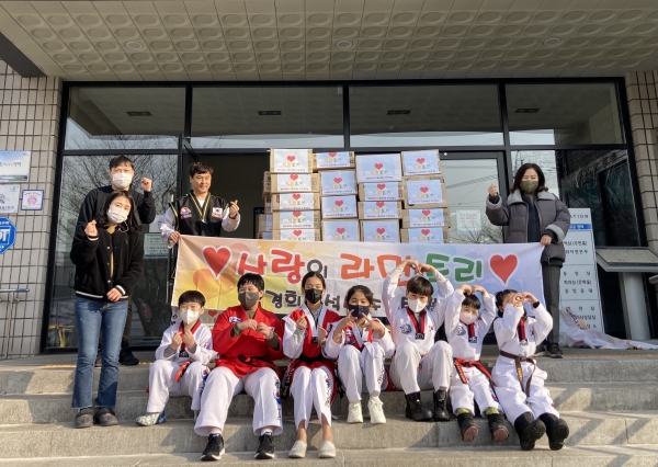 이번 기부는 겨울철 어려운 이웃을 위해 12월 한 달 동안 학원 자체적으로 ‘사랑의 라면 트리 만들기’를 진행해 소속 관원 어린이들이 모은 라면으로 진행됐다.
