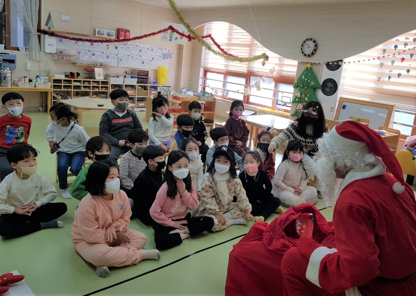 □ 김천유치원 원장(장옥남)은 겨울 방학식을 앞두고 즐겁고 따뜻한 연말을 되길 바라며 12월 23일(금)「루돌프 썰매 타고 산타 할아버지 오셨네!」를 실시하였다.