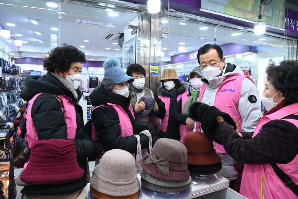 이 시장 등은 이날 오후 1시 30분부터 2시간 동안 신장시장 등 전통시장을 돌며 경기침체 및 강추위로 힘든 시기를 보내고 있는 상인들을 격려하고 직접 물건을 구매하며 전통시장 활성화 홍보에 나섰다.