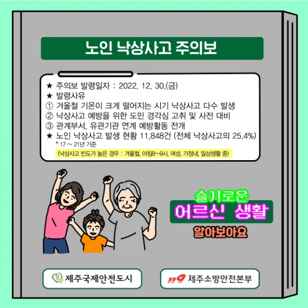 제주소방, 겨울철 노인 낙상사고 주의보 발령