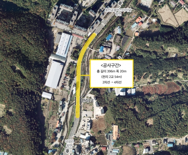 시는 54m의 교량은 물론 이와 연결된 약 400m의 도로를 왕복 2차로에서 왕복 4차로로 확장한다.