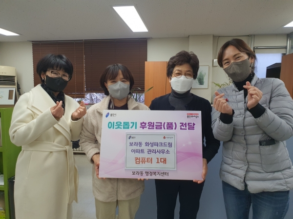 보라동 화성파크드림 아파트 관리사무소도 중고 컴퓨터 1대를 수리해 전달하는 등 힘을 보탰다.