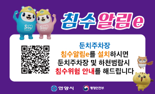 침수알림e 서비스는 안양시 홈페이지 및 둔치주차장 안내 배너의 QR코드를 통해 쉽게 설치할 수 있다.