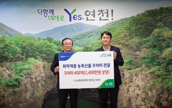[금요저널] NH농협은행 연천군지부는 지난 6일 연천군청을 방문해 취약계층을 위한 농축산물꾸러미 400상자를 기탁했다고 9일 밝혔다.