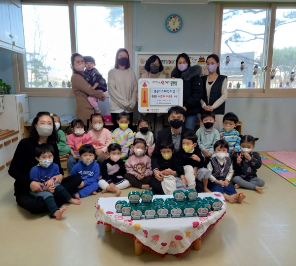 중흥키즈어린이집은 지난 10일 종촌동을 찾아 ‘종촌동 사랑의 저금통’을 전달했다.