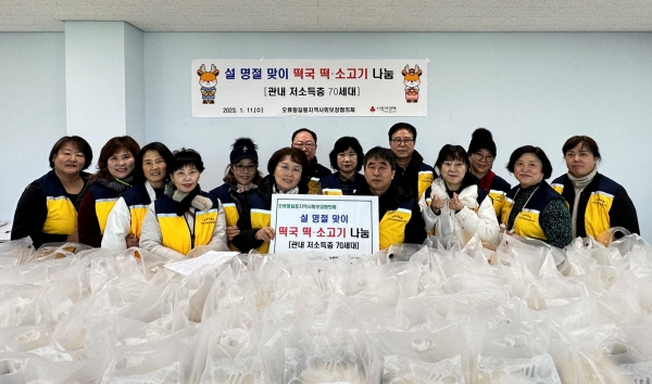 [금요저널] 인천 서구 오류왕길동지역사회보장협의체는 지난 11일 설 명절을 앞두고 관내 독거 어르신 및 중장년 등 70세대에 떡국 떡·소고기 나눔 행사를 진행했다.