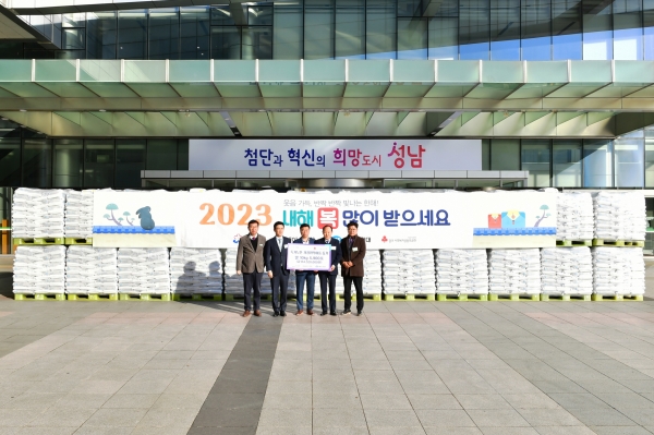 시는 이날 오전 10시 시청 광장에서 신상진 성남시장, 안승만 에이스경암 상무 등이 참석한 가운데 ‘설맞이 서로 사랑 나누기 쌀 전달식’을 했다.