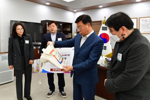 시는 1월 16일 오후 시장 집무실에서 신상진 성남시장과 곽창환 현대백화점 판교점 부점장, 조광용 모란전통기름시장 상인회장, 김순한 소상공인시장진흥공단 성남센터장 등이 참석한 가운데 ‘백년기름특화거리 활성화를 위한 홍보 물품 전달식’을 했다.