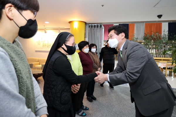 이 시장은 요한의 집 세실리아 원장 수녀로부터 안내를 받아 관계자들과 시설 곳곳을 둘러보고 입소자들에게 일일이 안부를 물으며 새해 인사를 건냈다.