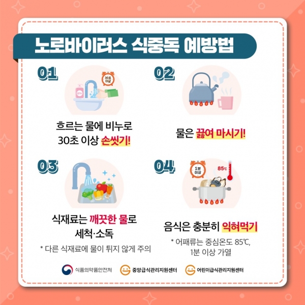 특히 노로바이러스 식중독은 기온이 떨어져도 생존율이 높아져 겨울철에 특히 조심해야 한다.