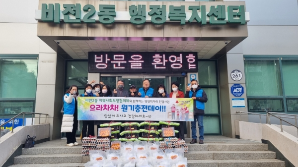 [금요저널] 평택시 비전2동 지역사회보장협의체는 지난 17일 지역내 홀로 사시는 어르신 및 저소득 위기가정 15가구에 설맞이 명절 먹거리를 전달하는 ‘으라차차 원기충전데이’를 추진했다.