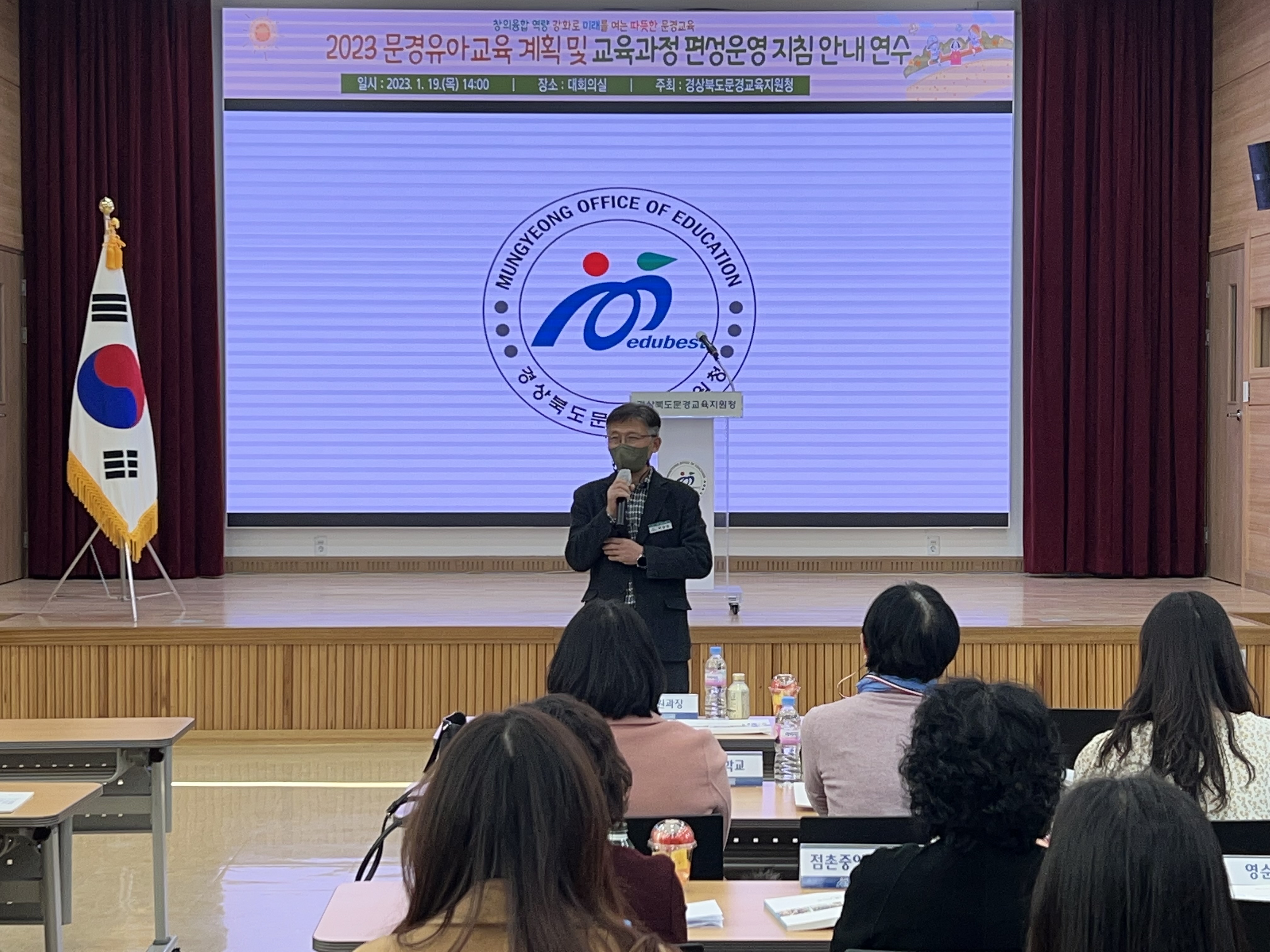 □ 문경교육지원청(김현오 교육장)은 19일, 3층 대회의실에서 관내 공・사립유치원 전임원장, 원감 및 업무담당자를 대상으로 「2023 문경유아교육계획 및 경상북도 유치원 교육과정 편성·운영 지침 안내를 위한 연수를 실시하였다.
