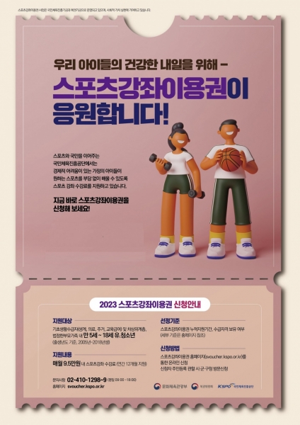 스포츠 강좌 이용권 지원사업은 취약계층 유·청소년과 장애인의 여가 스포츠 활동에 대한 공정한 기회를 제공해 삶의 질을 향상하기 위한 사업이다.