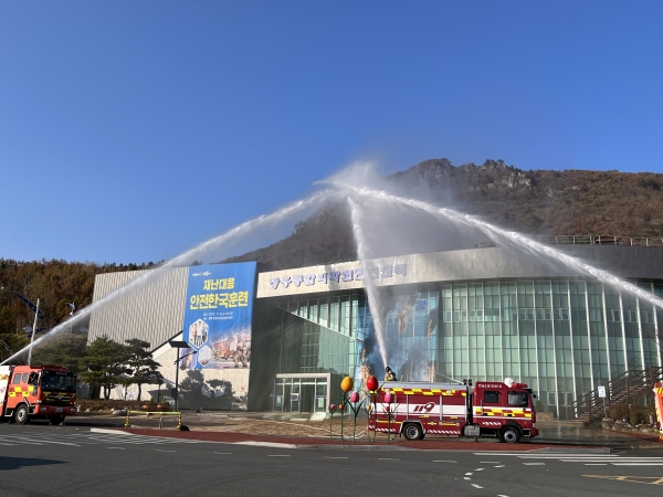 장흥군은 지난해 11월 장흥통합의학컨벤션센터 화재발생으로 인한 각종 추가 재난상황을 가정해 안전한국훈련을 개최했다.