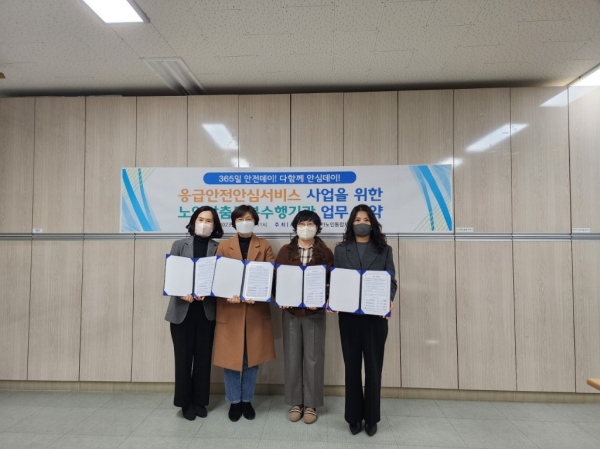 이에 따라 시는 노인맞춤돌봄서비스 수행기관과의 상호 협력을 통한 원활한 사업 운영을 위해 지난 13일 시흥재가노인통합지원센터에서 경기시흥작은자리자활센터, 거모종합사회복지관, 함현상생종합사회복지관과 업무협약을 맺었다.