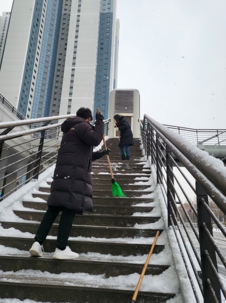 또한 청사 앞 인도와 건널목에 쌓인 눈을 청소해 청사를 이용하는 시민들의 안전과 편의를 확보했다.
