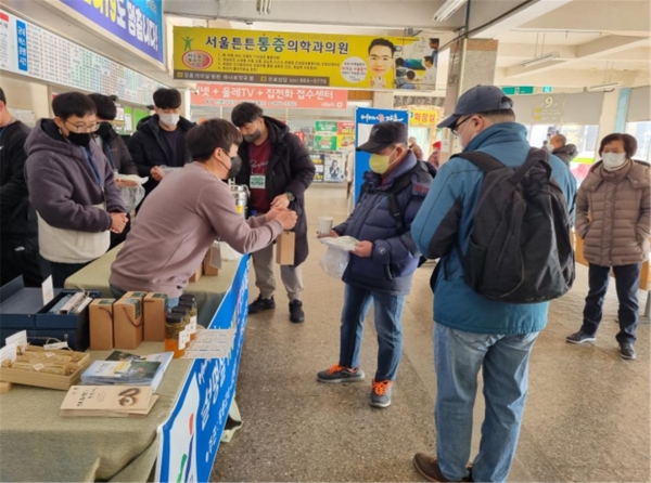 [금요저널] 장흥군4-H연합회는 지난 21일 장흥군시외버스 터미널에서 고향을 찾은 귀성객에게 청태전과 떡을 대접하고 짐을 들어주는 등 설 명절 귀성객 환영 봉사 활동을 펼쳤다.