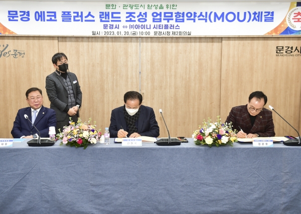 [금요저널] 문경시는 지난 20일 ㈜아이니 시티플러스와 민간투자사업인 에코 플러스 랜드 조성사업 업무협약[MOU]식을 가지고 관광도시로의 본격 행보를 시작했다.