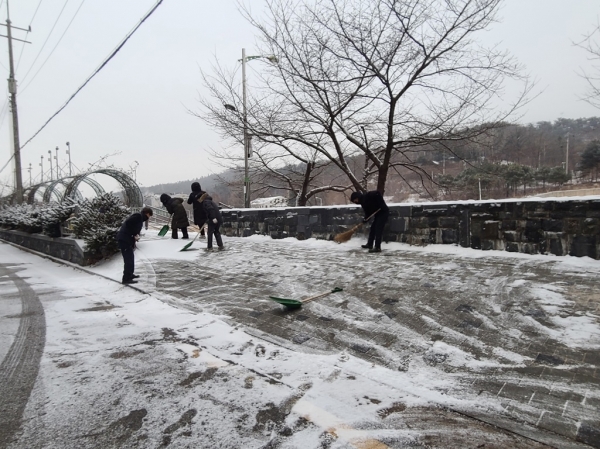 눈치우기 봉사단은 넉가래, 눈삽 등을 활용해 제설차가 다니지 못하는 통학로 중랑천 산책길, 버스정류장, 지하철역 주변 인도를 중심으로 제설작업을 실시했다.
