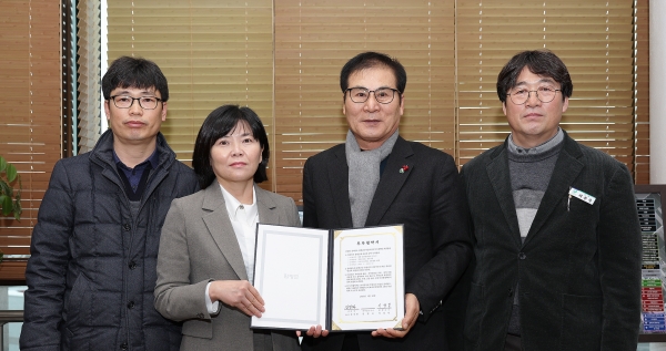 군수실에서 열린 협약식에는 이상익 함평군수를 비롯한 ㈜삼인 김경화 대표와 임만택 이사 등이 참석했다.