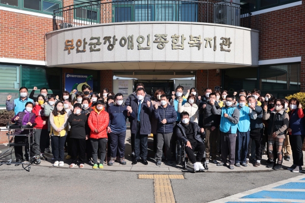 김산 군수는 “앞으로도 장애인과 비장애인이 서로 존중하는 건강한 지역사회를 함께 만들어 인간존중의 무안군을 만들겠다”며 “다시 한 번 장애인들이 소외받지 않도록 열심히 노력해 주시는 복지관 직원 분들 그리고 자원봉사자 분들께 감사드리며 이용자 여러분들도 항상 건강하시고 새해 복 많이 받으시라”고 말했다.