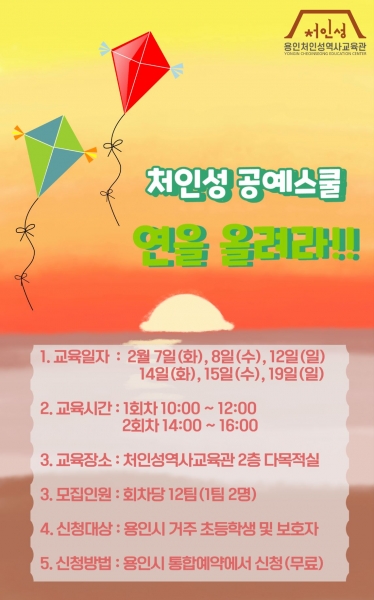 '처인성 공예 스쿨-연을 올려라'는 어린이와 보호자가 함께 처인성을 모티브로 한 연을 만들어 처인성에서 연을 날리는 프로그램이다.