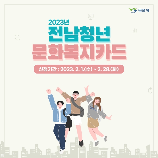 [금요저널] 목포시가 오는 2월 1일부터 28일까지 청년들을 대상으로 전남청년 문화복지카드 지원대상자를 모집한다.