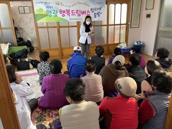 [금요저널] 영광군은 보건의료 접근도가 떨어지는 의료취약지역 주민을 대상으로 보건·복지·문화 통합건강서비스를 제공하기 위해 지난 1월 31일 영광읍 와전경로당을 시작으로 2023년 행복드림버스호가 힘차게 출발했다.