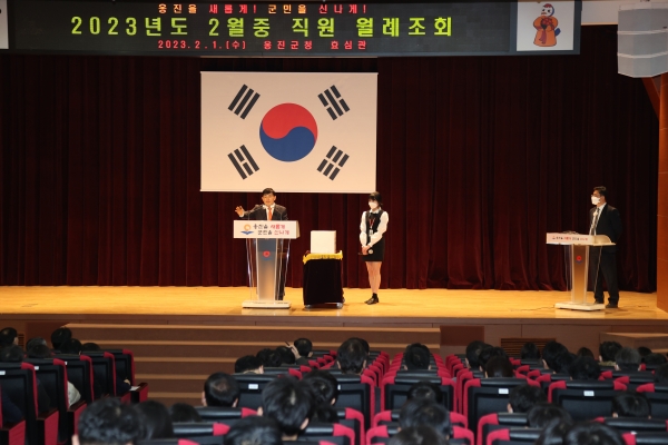 [금요저널] 인천광역시 옹진군은 1일 효심관에서 2023년 신년을 맞아 전 직원들이 참석한 가운데 2월 중 월례조회를 개최했다.