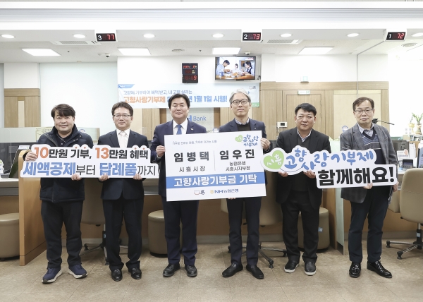 임 시장은 이날 고향사랑기부제의 성공적인 안착을 위해 농협과 업무 협력을 약속하고 농협 시흥시청출장소를 방문해 고향사랑기부제 전담 창구를 통해 기부금을 기탁했다.