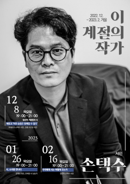 [금요저널] 고양특례시 아람누리도서관은 기획 프로그램인‘이 계절의 작가’ 겨울의 작가로 선정된 손택수 시인의 강연회를 오는 2월 16일 저녁 7시 운영한다고 밝혔다.