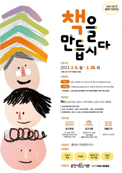 시민 책 출판비 지원 사업은 순천시민의 출판을 독려하고 시민의 자긍심 향상은 물론 시민 작가 발굴을 위해 실시하고 있다.