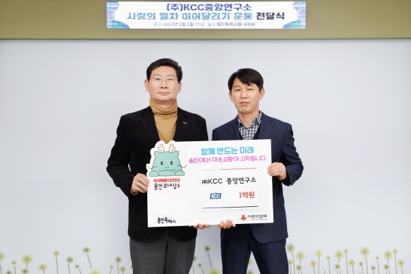 [금요저널] 용인특례시는 2일 관내 기업인 ㈜KCC 중앙연구소가 시의 연말연시 이웃돕기 운동 ‘사랑의 열차 이어달리기’에 성금 1억원을 기탁했다고 밝혔다.