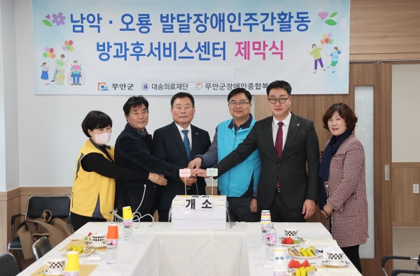 [금요저널] 김산 무안군수는 지난 2월 2일 남악·오룡 발달장애인 주간활동·방과후서비스센터가 삼향읍 대죽동로 16번길 31, 한승프라자 2층에 개소함에 따라 현판 제막식에 참석했다.