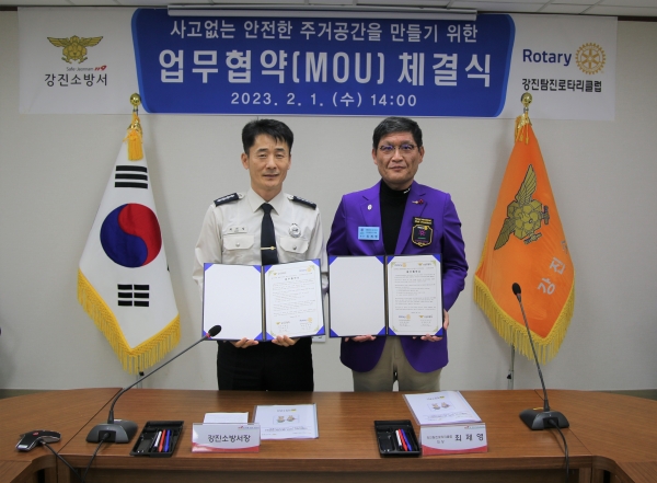 [금요저널] 강진소방서가 지난 1일 강진탐진로타리클럽과 함께 취약계층 생활안전을 위한 업무 협약식을 가졌다.