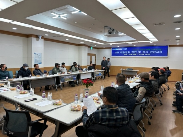 [금요저널] 강진군은 지난 2일 야생동식물 관리연합회 임원 및 유해야생동물 피해방지단 회원 32명을 대상으로 총기 안전교육 및 아프리카 돼지열병 대응강화 교육을 실시했다.