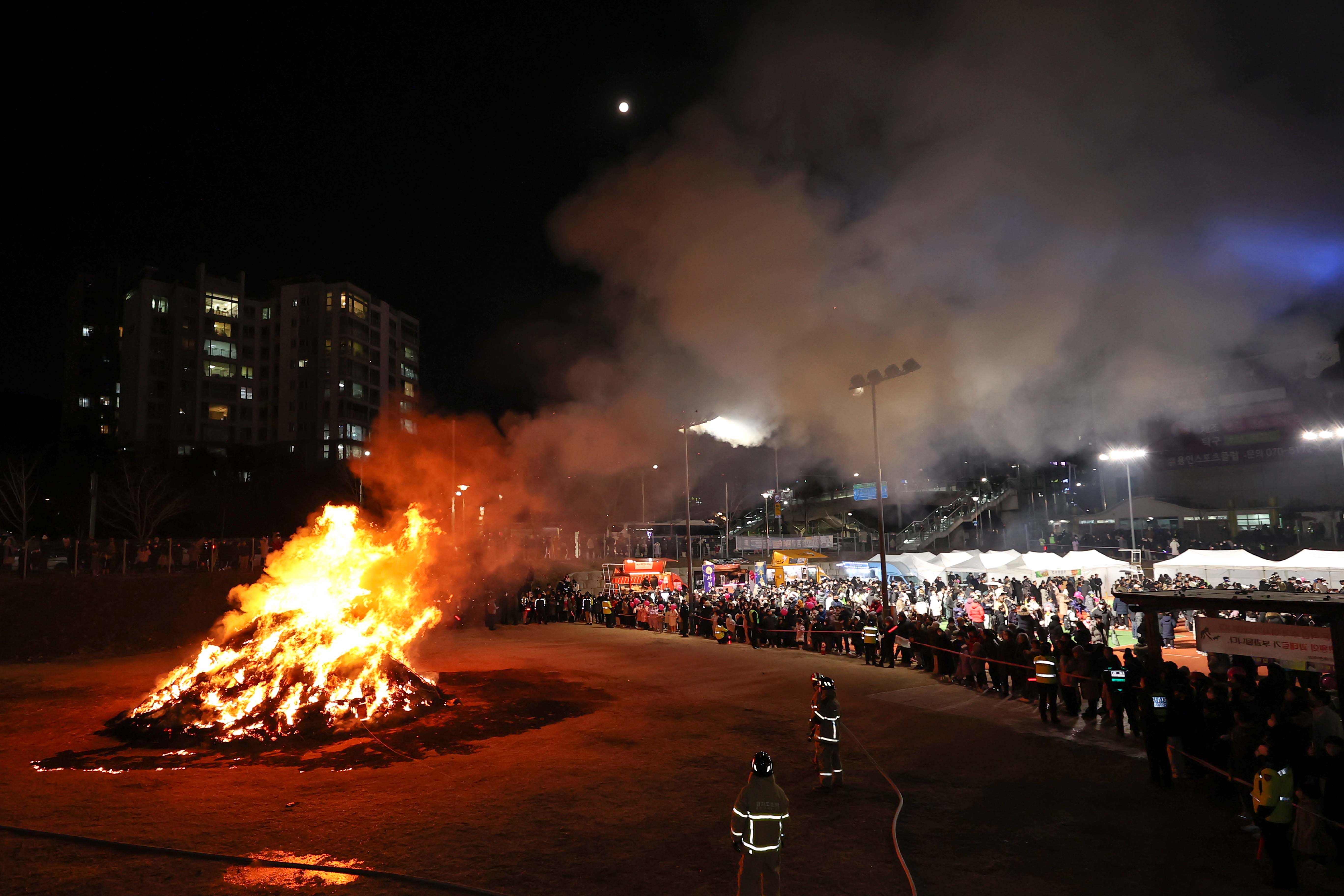 행사의 하이라이트는 달집태우기로, 시민들은 솟아오르는 불기둥을 바라보며 가족의 건강과 안녕을 기원했다.