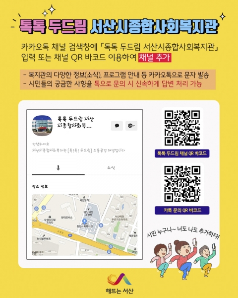 서산시, 종합사회복지관 톡톡 두드림 카카오톡 채널 개설·운영