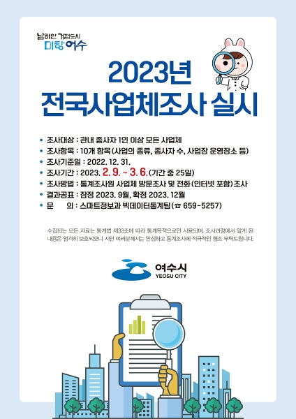 여수시, 9일부터 ‘전국사업체조사’ 실시…3만4천여 곳