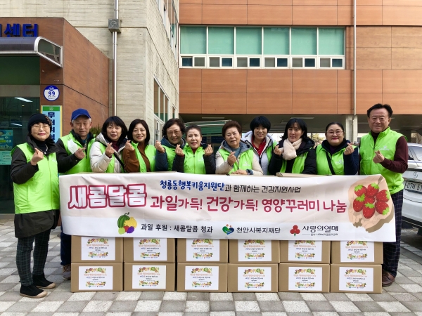[금요저널] 천안시 청룡동 행복키움지원단이 지난 8일 지역 주민의 영양 증진을 위한 ‘새콤달콤 과일가득 건강가득 영양꾸러미 나눔’ 사업을 시작했다.