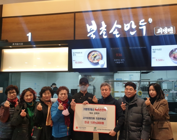 [금요저널] 남양주시 금곡양정행정복지센터는 지난 8일 가평휴게소 북촌손만두 김병우 대표가 금곡동 지역사회보장협의체에 후원금 100만원을 지정 기탁했다고 9일 밝혔다.