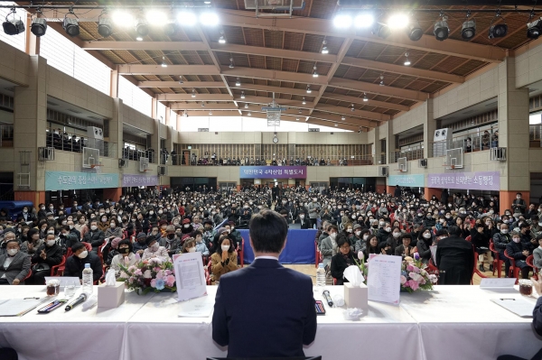 [금요저널] 신상진 성남시장은 2월 9일 분당중앙고등학교 체육관에서 새해 시민 인사회를 개최해 사흘 연속 소통 행보를 이어 나갔다.