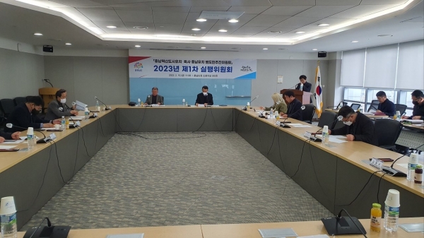 [금요저널] 충남혁신도시유치범도민추진위원회와 육사충남유치범도민추진위원회는 10일 도청 소회의실에서 ‘2023년 제1차 실행위원회’를 공동 개최했다.