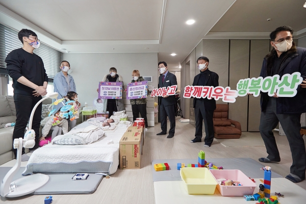 이어 “그만큼 한 생명의 탄생은 한 가정의 행복과 축복을 넘어, 아산시의 경사이자 대한민국의 기쁨”이며 “앞으로도 출산·육아 지원 정책에 각별한 노력과 관심을 기울이며 아이 낳고 키우기 좋은 도시 아산을 만들기 위해 계속 노력하겠다”고 말했다.
