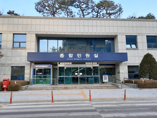 사진) 안양시 종합민원실 전경 사진, 안양시는 지난해부터 종합민원실 정문 앞에 24시간 이용할 수 있는 무인민원발급기기 창구 설치, 운영하고 있다.